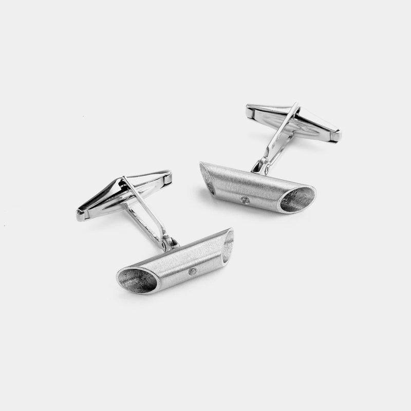 Item Code: ant-79p5a05-silverNoteworthy silver cufflinks in the form of a tube with cut ends. All decorated with a small uncut diamond. Made of brushed silver.