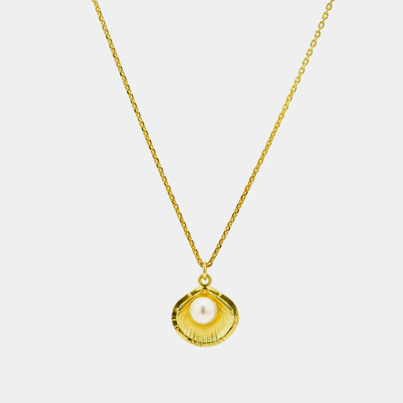 This silver necklace is literally "shell-abrating" with a pearl inside! It's gold-plated too, for some extra sparkle.
