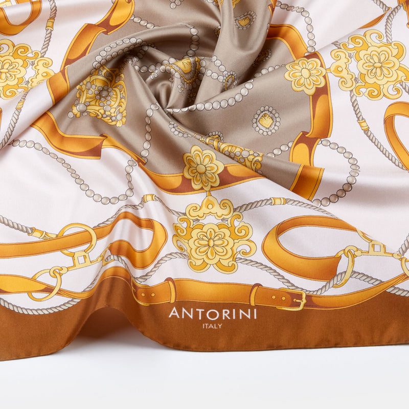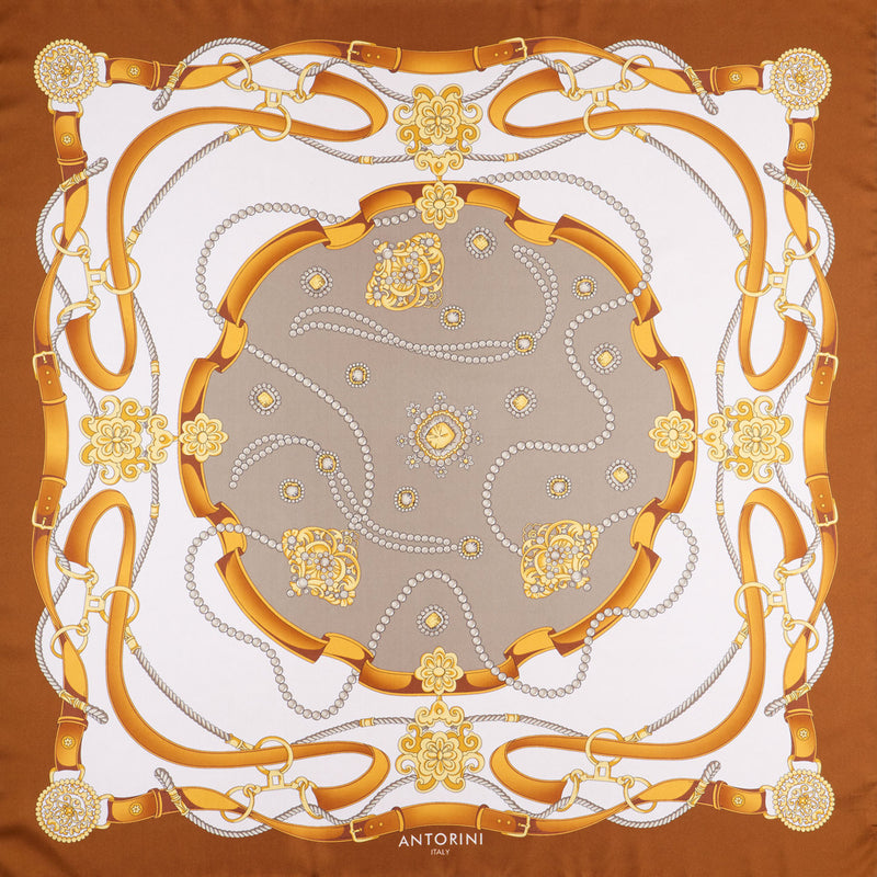 Gold & Bridle Silk Scarf, Brown