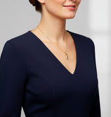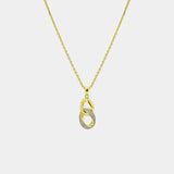 This silver chain, Circles of Love, features a pendant of entwined circles adorned with sparkling zirconia and finished with a bold gold plating.