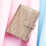 Item Code: ant-journal-bronze-plainMultifunctional leather diary in very special leather with snake pattern and bronze metallic reflections. The diary accepts and reflects ambient light from dark to almost golden in direct light. The interior is elegantly complemented with beige leather.