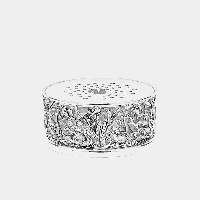 Keep your food, plate, or platter warm with this Stylish dish warmer decorated with Leaves and Swans. The tealight candle is included.