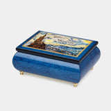 Item Code: ec-starrynightPerfectly matching music jewelry box in blue, beautiful wood, with a lid decorated with the painting "The Starry Night" by Vincent Van Gogh.
