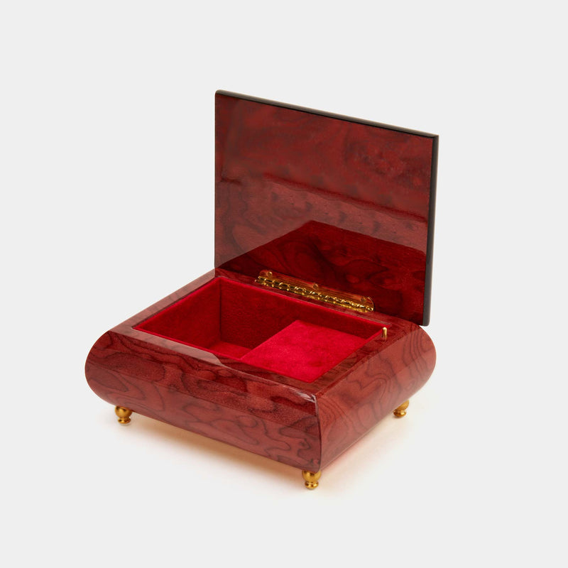 Thanks to the built-in mechanical movement, when the lid of the jewelry box is opened, an 18-tone melody starts playing.
