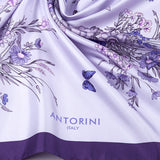 Item Code: ant-1869The inspiration for this beautiful violet 100% Silk scarf is a summer meadow full of Butterflies. Truly an inspirational work of art. Handmade using the finest silk from Como, Italy. Limited edition. Handmade in Italy with the use of 100% Italian silk. Finished by hand with finely rolled hand-stitched edges.