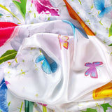 Item Code: ANT-SILK-TULIPThis gorgeous limited edition ladies scarf with a beautiful motif of meadow and tulips is manufactured by hand using Italian Como's softest lightweight silk.