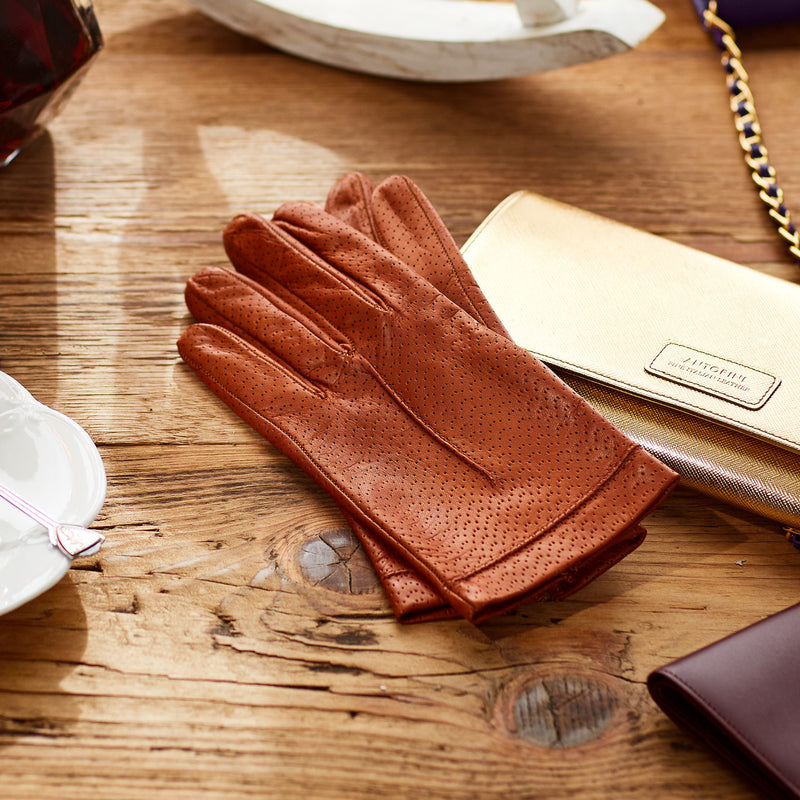 Women's Silk Lined Leather Gloves in Nuts Brown