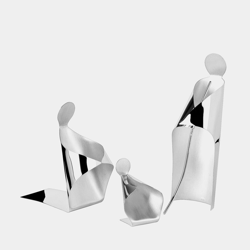 The timeless beauty of the nativity scene is artfully crafted with a minimalistic style, graced by the gentle figure of Baby Jesus, all radiantly silver-plated.