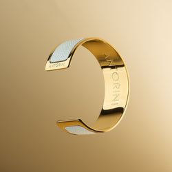What a beautiful combination! ANTORINI Gritti leather in white and the gold color of the bracelet.