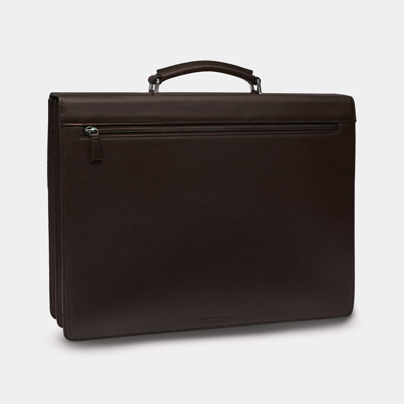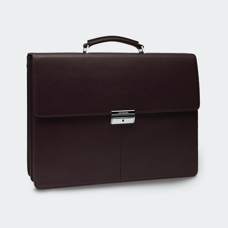 Item Code: ant-507-brownThis ANTORINI Executive Leather Briefcase in chocolate brown color features a high style necessary for all business fields. This luxury leather briefcase has a double-divided interior and pockets for pens, notes, phones, cards, and other accessories. Inside is a full zippered pocket and two full pockets for documents. There is also one full back pocket. This executive briefcase is secured with a key clip that can lock and comes with a removable shoulder strap.