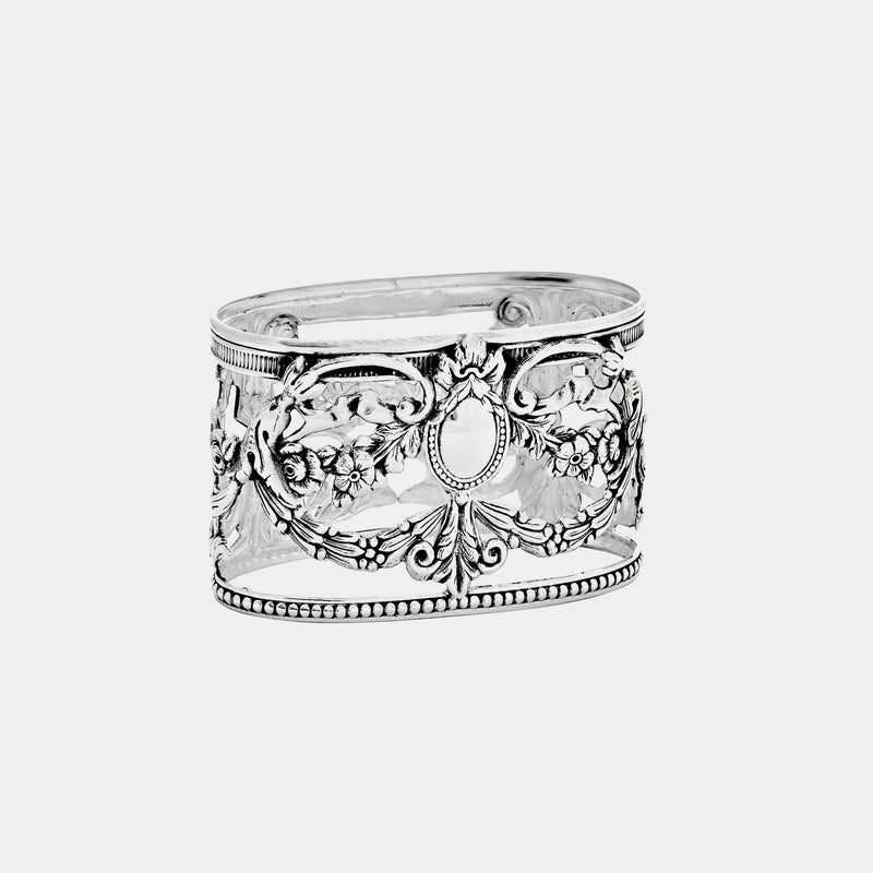 Silver-plated, richly decorated with flowers napkin ring for stylish dining.