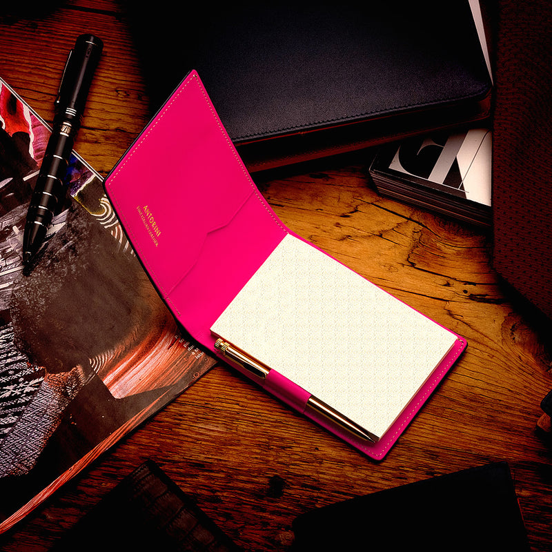 Item Code: ant-note-navy-pinkProvoking neon pink interior colour hidden by a navy exterior leather. The refined ANTORINI pocket notepad is a great accessory and gift. A ballpoint pen is included.