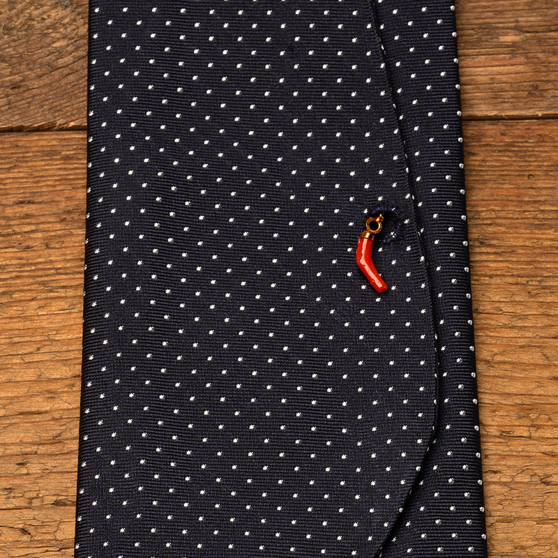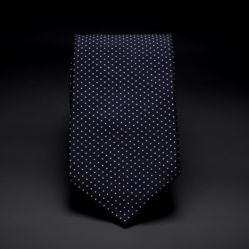 Silk Pocket Tie in Black-Navy with White Dots